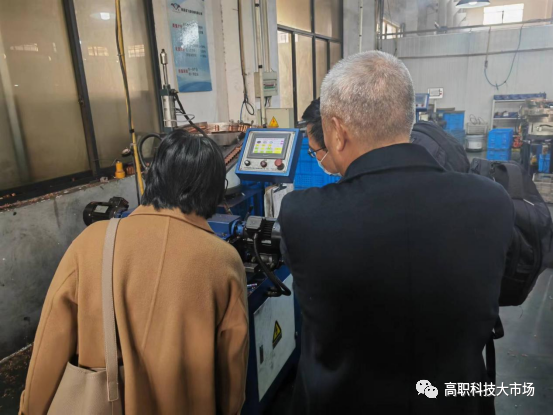 宁波科技大市场高职院校专业市场叶宏武教授,高级技术经纪人郑春波等一行三人,深入车间,就国际、国内先进管道加工技术进行了深入广泛交流。