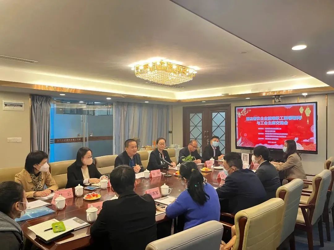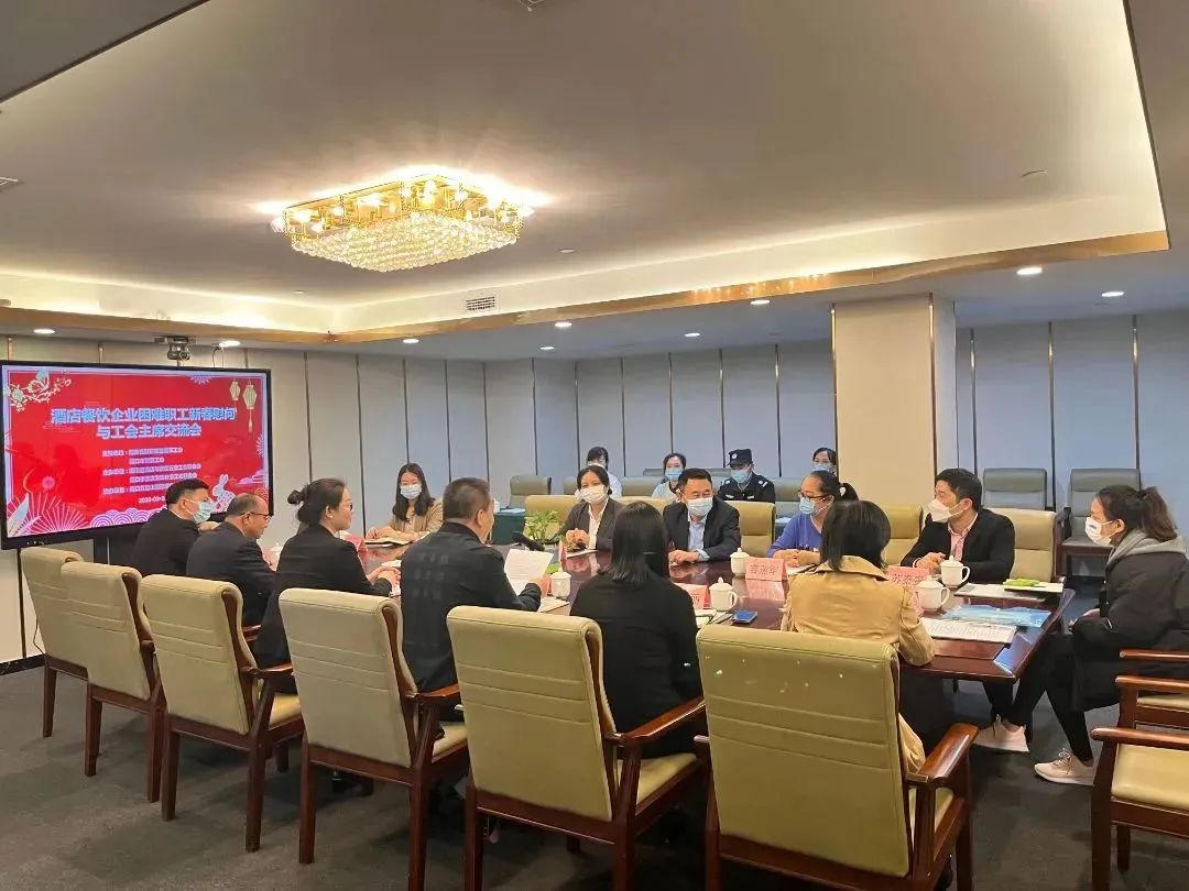 2023年2月2日,由省酒店与餐饮行业工会联合会和市餐饮烹饪行业工会联合会主办,海口五指山国际酒店协办的“酒店餐饮企业困难职工新春送温暖慰问与工会主席交流会”在海口五指山国际酒店举办,落实省总工会新春送温暖活动精神,促进企业基层工会工作交流,增进工会同仁友谊。龙泉集团、海口五指山国际酒店、海口华盈酒店、海口新奥斯罗克酒店、海口贵族游艇酒店、豪约客、湘惠馆,铜炎府火锅、古姑姑等酒店餐饮企业工会主席和困难职工代表出席,特邀五指山国际酒店总经理王艳霞莅临指导。