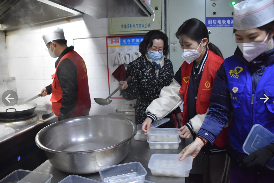 一大早,在李沧区餐饮行业商会会长张民涛金川路鸿涛苑店里,一片热气腾腾的景象,青岛上谷食品科技有限公司提供的爱心水饺、青岛萨么餐饮管理有限公司提供的爱心元宵,所有人一起煮元宵、煮水饺、分装、打包、装袋,忙而有序,大家都希望尽快把爱心送到城市美容师的手里。