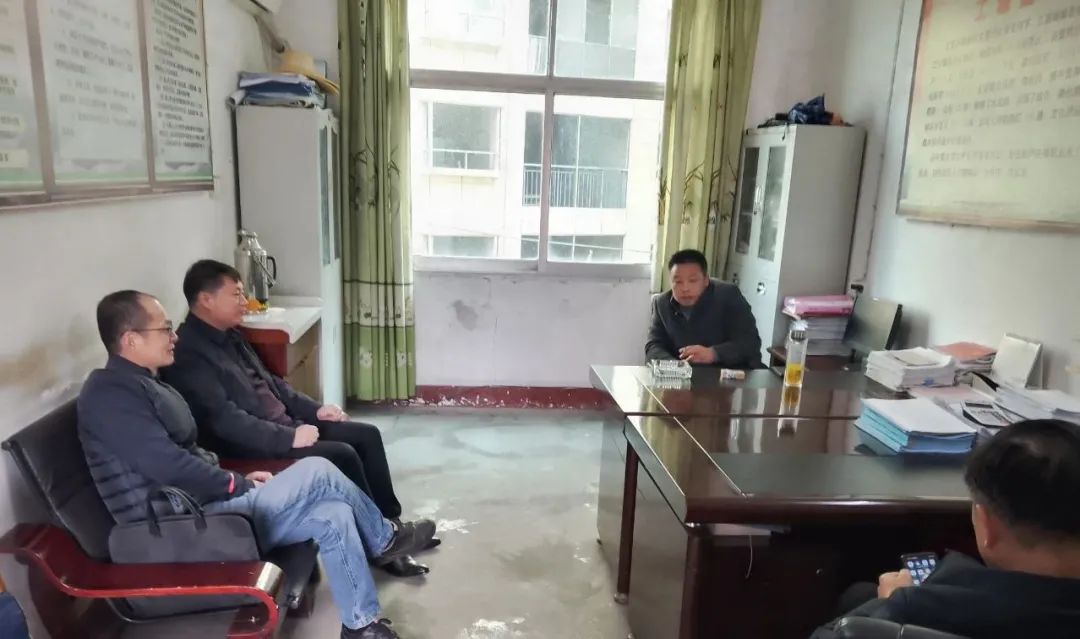 集团副总经理汪凯、城乡投资公司总经理肖雄健与三里畈镇党委副书记、镇长罗威协调推进三里畈便民服务中心项目建设工作。