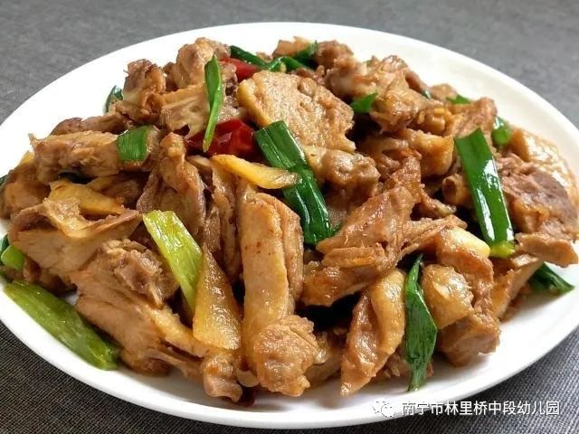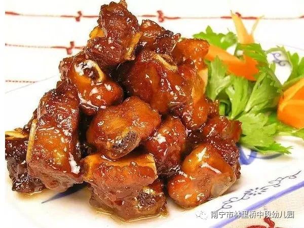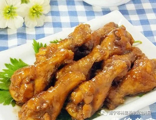 中餐:荞麦香米饭 照烧鸡腿 松仁玉米炒肉沫 清炒春菜 莲藕排骨汤