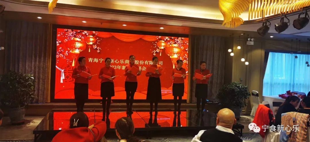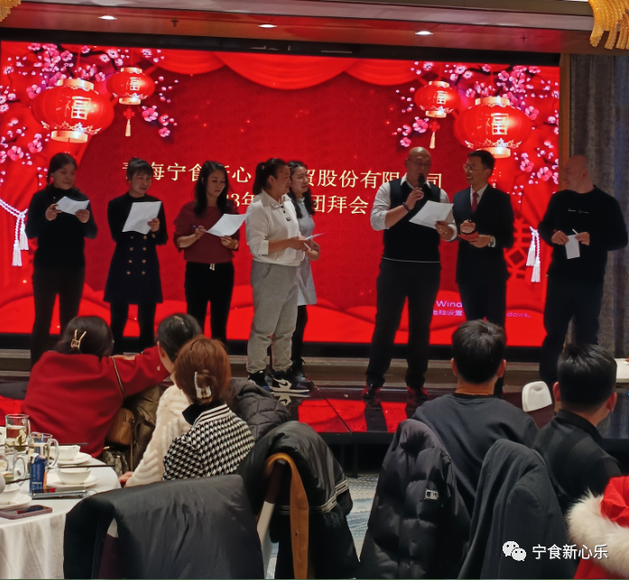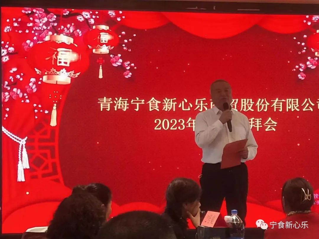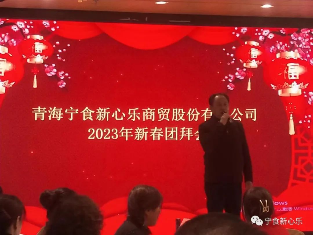 2023年2月2日,宁食新心乐商贸股份有限公司2023年新春团拜会在万家海港宴会中心隆重举行。集团公司董事长王学刚先生、青海宁食新心乐总经理李兵先生及各部门经理、各店长出席了本次团拜会,大家满怀喜悦之情,围坐畅叙情谊,同贺新春佳节,共话美好未来。