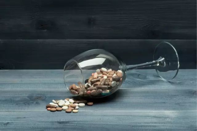 在服用一些药物期间必须忌酒,如头孢菌素类、灰黄霉素、氯霉素、磺酰脲、甲硝唑等。遗憾的是,大部分关于酒精-药物相互作用的研究是针对酗酒群体的。因此有关适量饮酒与药物的不良反应的相关资料很少。不过,对于服用三环类抗抑郁药的人来说,即使少量饮酒,也会引起肌肉失控。服用控制高血压的药物 MAO(单胺)后,饮用红葡萄酒后,药效会减弱。长期服用对乙酰氨基酚,会加重酒精性肾脏损害。
