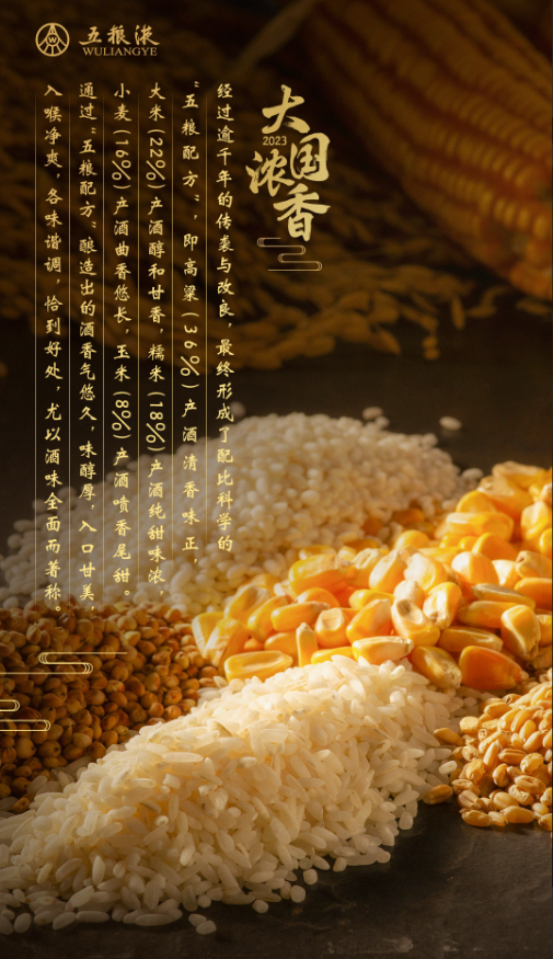 作为世界上率先采用高粱、大米、糯米、小麦和玉米五种精细谷物为原料酿造出来的烈性酒,五粮液的“大国浓香”历史源远流长。