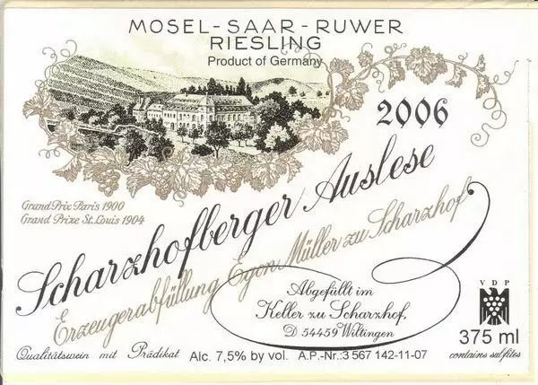 Amtliche Prufungs-number:简称 A.P.Nr.,表示官方许可编号。Amt 在德语中是“政府机构”的意思,Prufung 是“证明”的意思,所以连起来就是“官方许可编号”。来自德国法定产区的葡萄酒酒标上一般都会有官方许可编码。
