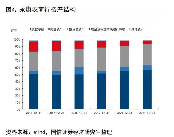 近年来永康农商行规模实现了较好扩张,2016-2021年资产总额、贷款总额和存款总额年均复合增速分别为13.8%、15.5%和12.6%。贷款规模保持较好增长主要是区域小微企业贷款需求旺盛,公司积极发力进一步深化与客户的黏性,同时通过投放“浙里贷”线上贷款产品等方式拓展客户。