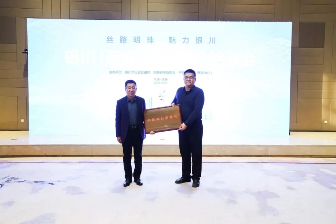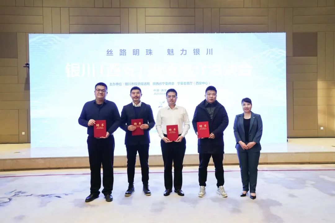 同时,银川投促局授予宁夏会客厅(西安中心):银川市招商引资联络处,并聘请了:宁夏会客厅(西安中心)理事长、陕西省青年企业家协会常务理事闫捷,北京宁夏企业商会副会长马骉,四川省宁夏商会副会长哈振刚,陕西广东商会执行会长张涛 “银川市招商引资大使”荣誉称号。