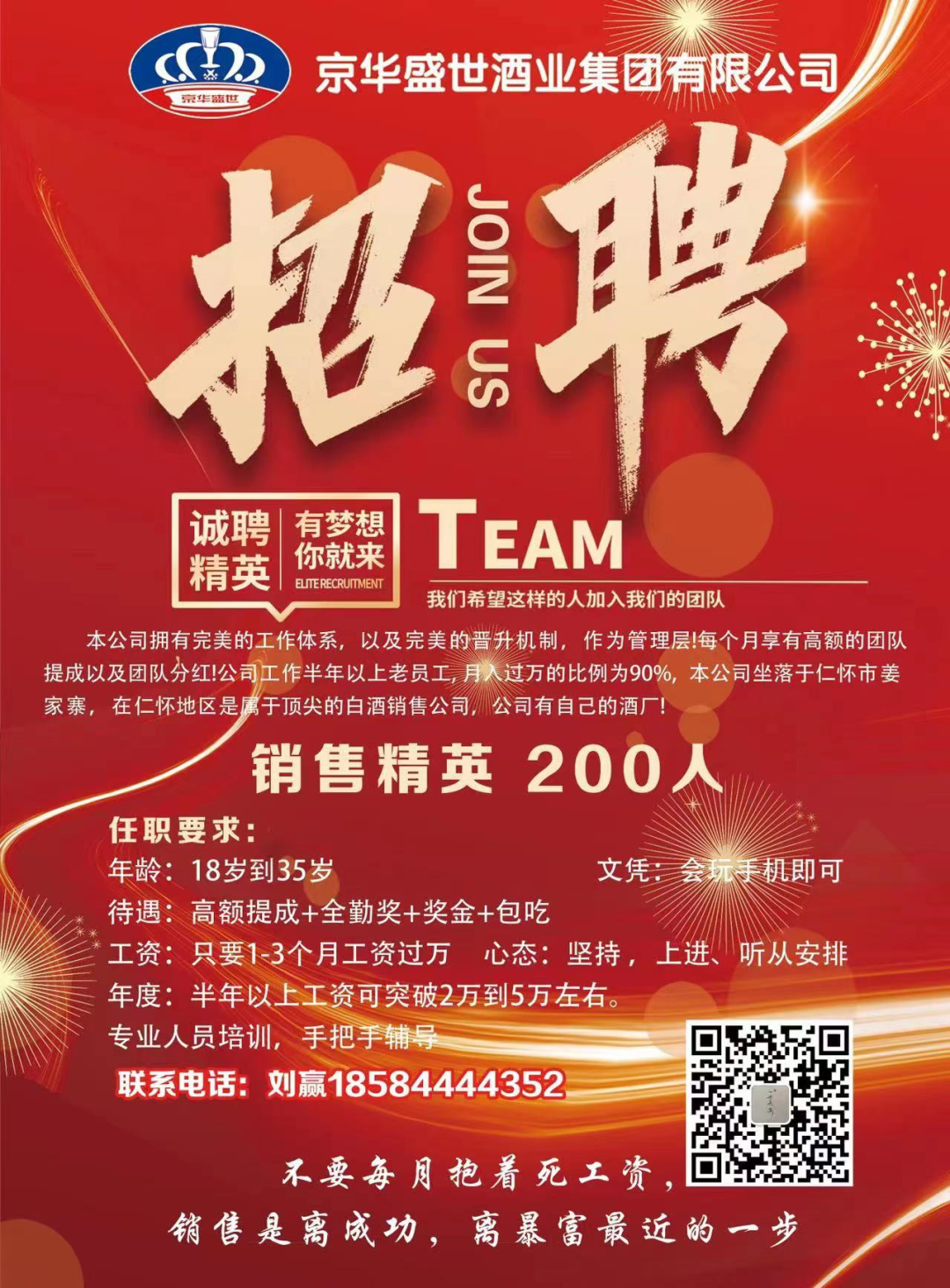 贵州京华盛世酒业集团【古酱运营总部】2023年招聘如下:
