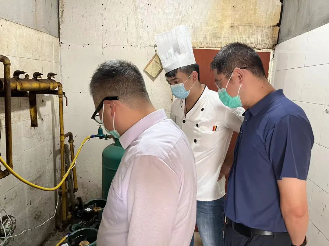 在餐饮企业,检查组现场仔细检查燃气灶具及连接情况、燃气泄漏安全保护装置安装情况、消防设施设备配备情况等。检查组要求企业认真落实安全生产主体责任,坚决落实安全隐患自查自纠,做到安全用气、用火、用电。