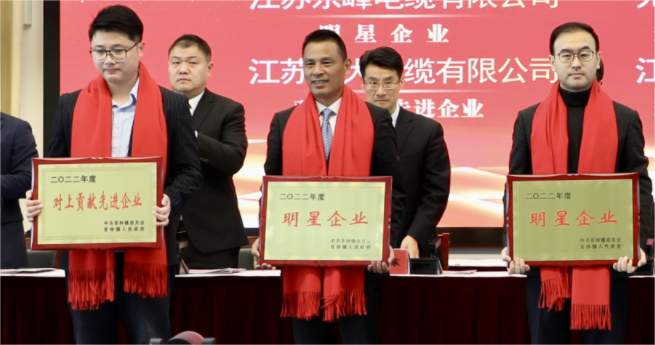 在1月28日及29日先后举办的2023宜兴市委经济工作暨企业创新发展大会及官林镇2022年度综合先进表彰暨企业创新发展大会上,中煤电缆收获官林镇明星企业、对上贡献先进企业、科技与人才工作先进企业、“慈善之星”先进单位、和谐劳动关系先进单位等众多荣誉。