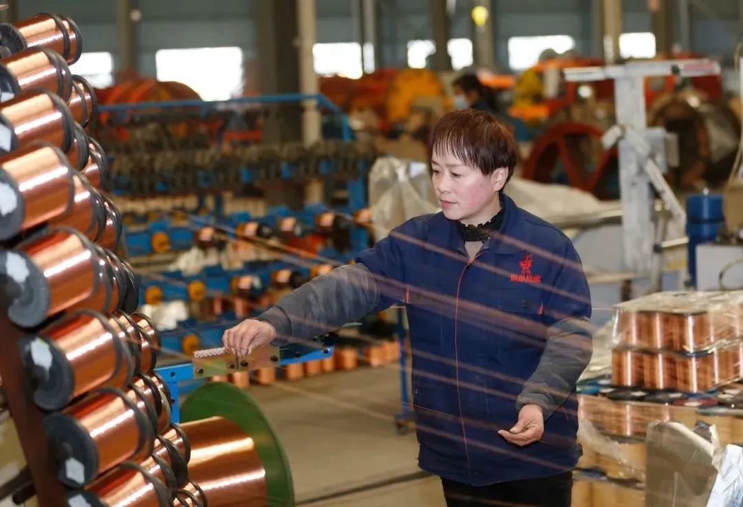 走进铜泉线缆的生产车间,多台设备正高速运转,各生产线马力全开,流水线上的材料经过层层工序制成成品,工人将线缆整齐摞成堆,叉车来回穿梭其间进行转运。“公司的订单量充足,现在已经排到5月份。目前员工全员在岗,生产势头强劲。”铜泉线缆生产部部长张卫平表示。