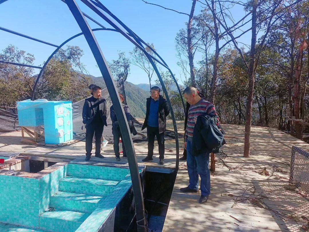 随后,集团党支部副书记、总经理洪海涛就春节后三百山户外野奢帐篷基地项目复工复产现场调研。强调要从细节着手,坚守匠心,强化对接,加快工程建设进度,确保精品工程品质。房地产公司经理等相关人员陪同。