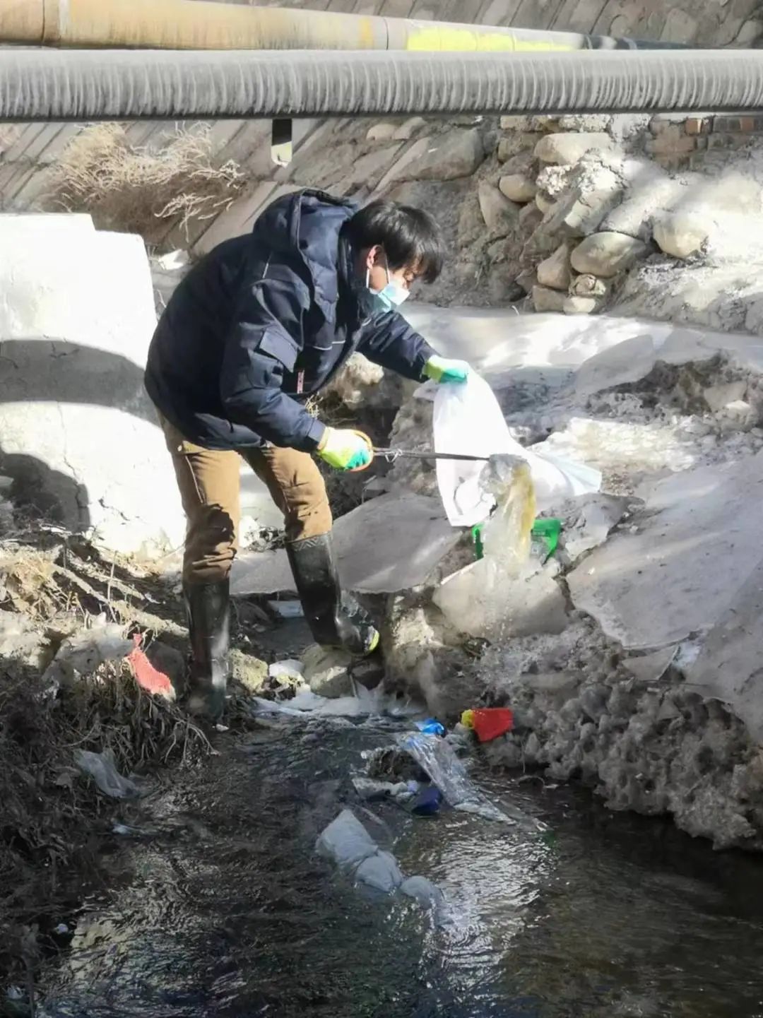 2月3日,城乡水务有限公司稽查部到头道河沟开展“我帮你,我是志愿者”环境卫生整治活动,共捡拾垃圾5袋,并到共驻共建柳树沟社区景泰苑小区清理楼道小广告。