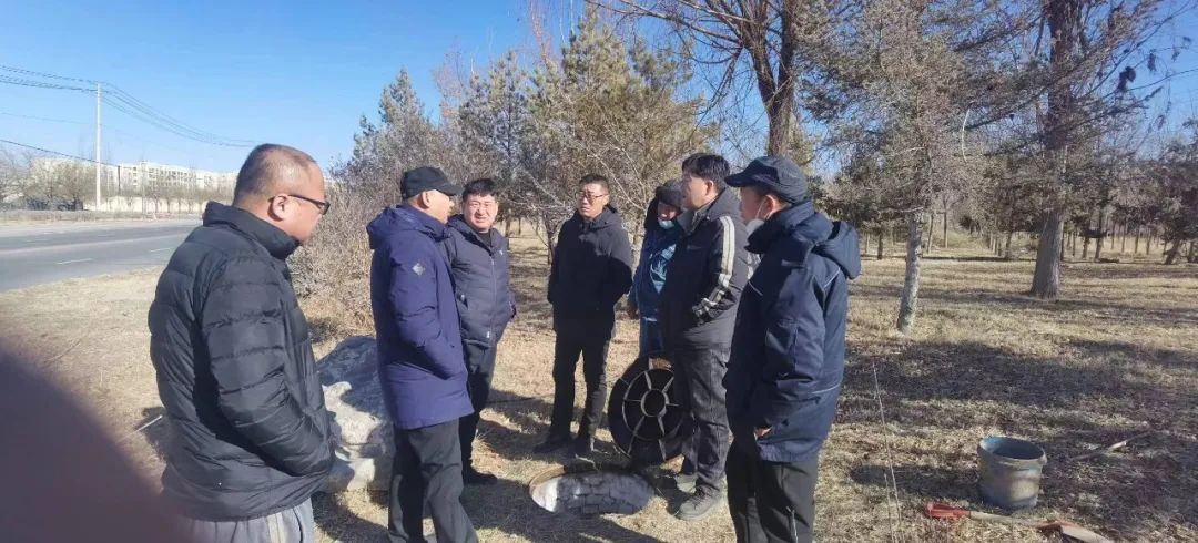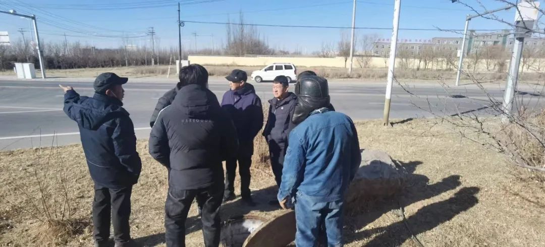 1月29日,城乡水务有限公司到英雄会路口管道漏水问题现场制定解决方案。