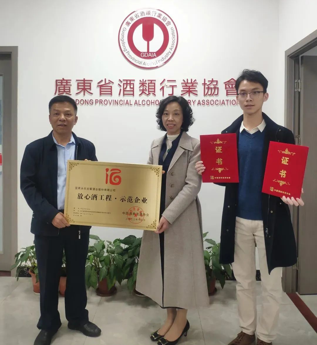 最后,彭洪会长向我会副会长单位宜宾永乐古窖酒业股份有限公司颁发“2022年放心酒工程示范企业(店)”牌匾及证书。