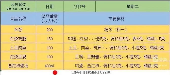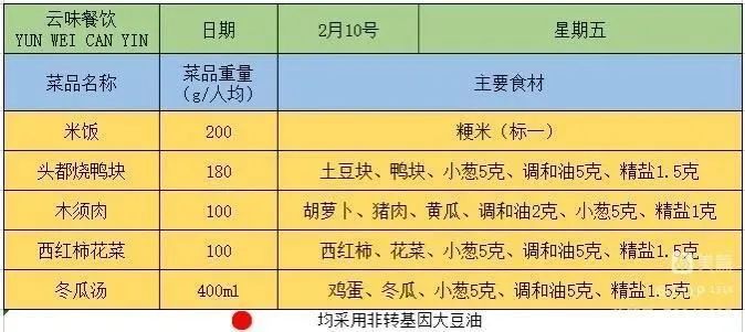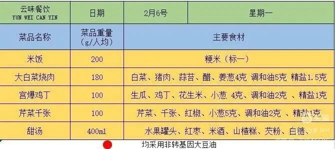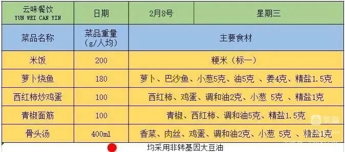 1:凤阳云味餐饮厨房所使用的油均为一级非转基因大豆油(金龙鱼/福临门)。