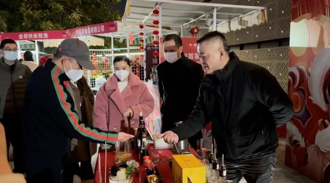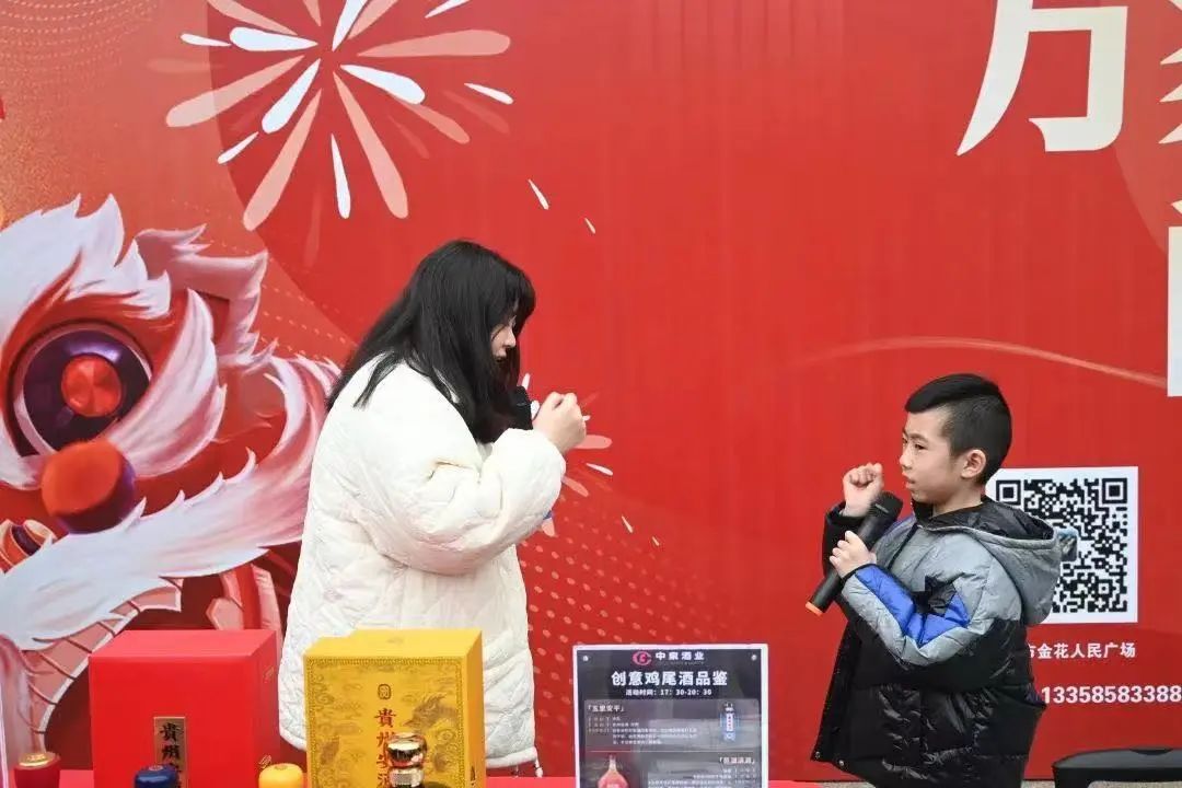 “两好、三星、四逢、五魁、六连……”时而急促时而舒缓的酒令声此起彼伏,吸引人群驻足观赏。这是中泉酒业公司以酒为媒,助力中央商务区“数字元宵”金花市集的活动之一。现场观众摩拳擦掌,撸起袖子,神速心算,敏捷出指,亮出嗓子,掀起了一阵阵划拳高潮,小朋友们也争先恐后、跃跃欲试,“石头剪刀布”一决高下,赢者满心欢喜地将奖品抱回家,为充满烟火泉州味的金花市集增添了几分热闹。