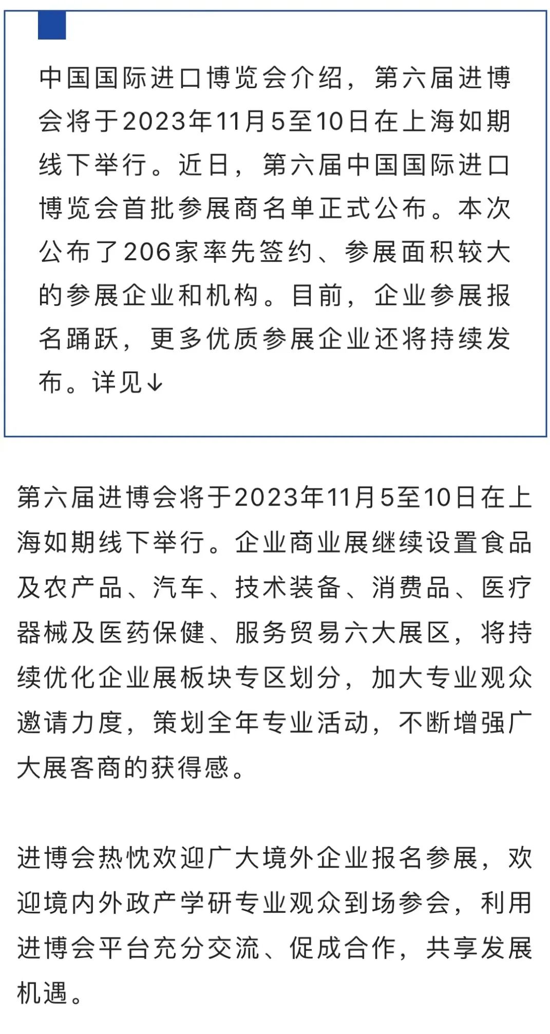 【关注】共206家!第六届进博会首批参展商名单正式公布