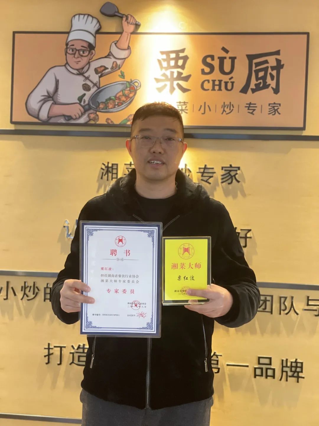 粟红波从小就热爱烹饪,1992年,他选择到长沙中山厨校学习烹饪技术,之后在1994年,又进入到湖南省烹饪协会厨师学校工作。1995年,他拜“湘菜泰斗”王墨泉为师,静心磨砺自己的厨艺、打磨对湘菜的理解。他还广纳百味,不断进取,于1997年前往德国工作学习,最终在2012年开创了家喻户晓的品牌——粟厨小炒。如今,以湖南家常菜为主打的粟厨小炒已经成为了口碑湘菜品牌,获得了外地游客与本地食客的众多好评。