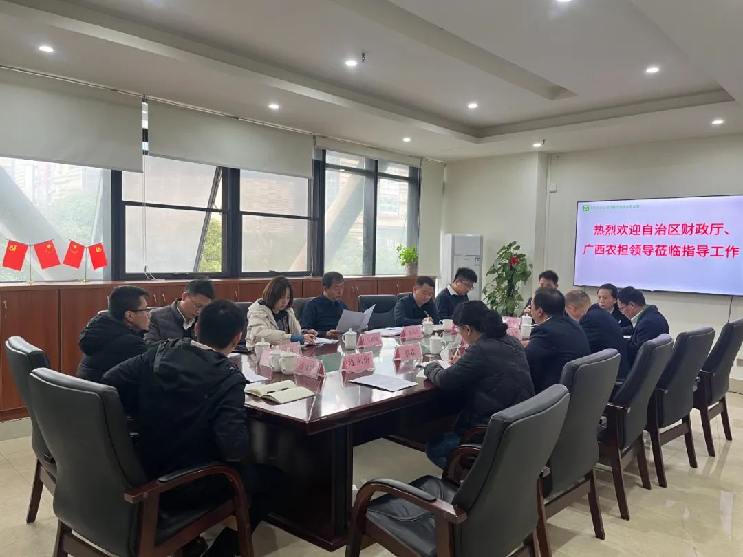自治区财政厅金融处代表马梦婕、广西农担副总经理刘青云、业务发展部部长陈泽栋、南宁办事处副主任罗勰等业务负责人;宾阳县财政编审中心蔡霖、县金融办业务负责人邓慧;宾阳农担公司总经理韦荣虎以及各部门经理、业务骨干参加座谈。