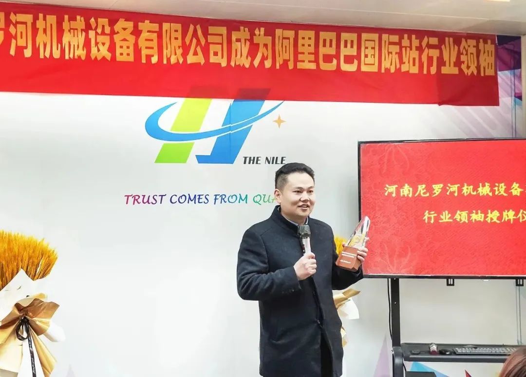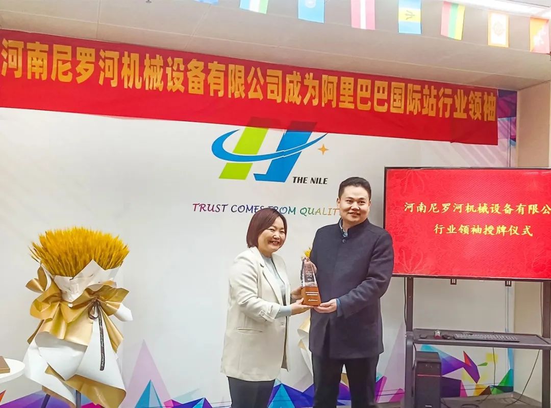 2月6日,阿里巴巴河南区域经理及产品经理一行到访尼罗河机械,为河南尼罗河机械设备有限公司颁发行业领袖商家荣誉奖杯。