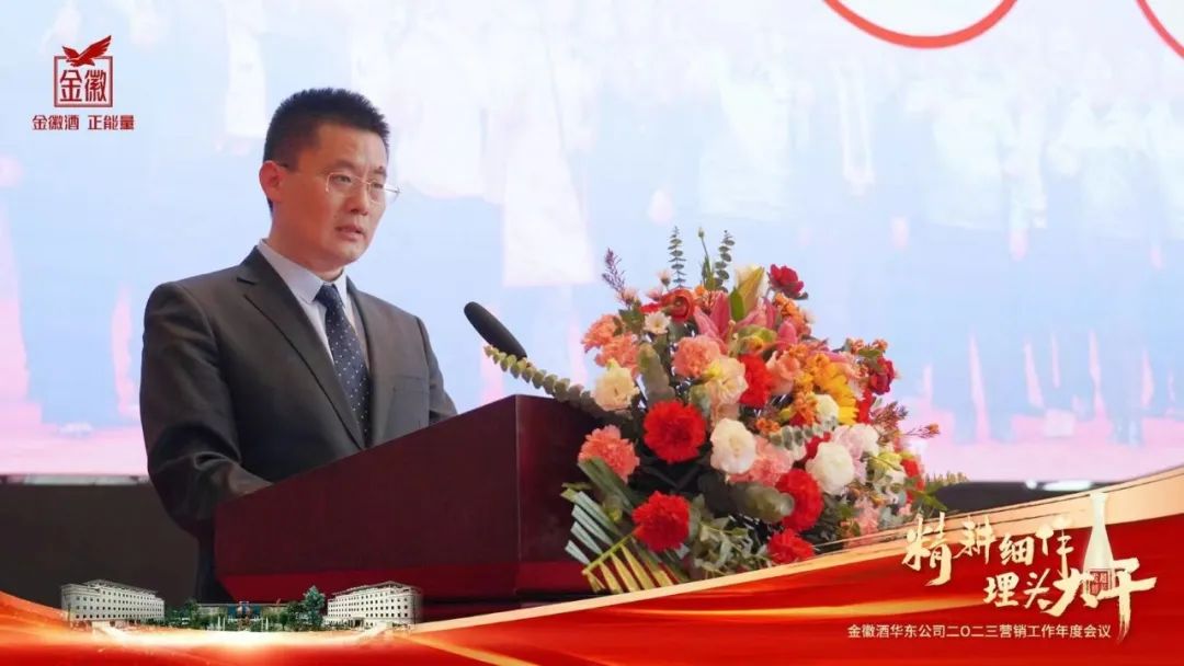 从百人百商业务、人才建设、商业模式、品牌建设、管理机制等方面全面总结了2022年取得的成绩,分享了2023年行业发展呈现长期向好局面的总体形势预判和华东公司未来5年发展规划,对2023年营销工作做出全面部署。他表示,2023年是华东公司全面加速突破年,华东公司将贯彻公司营销转型“C端置顶”的战略要求,围绕“365”工作思路奏响华东发展奋进曲,全面推动营销工作实现新突破。2023年是精耕细作、埋头大干的一年,也是践行华东公司创新突破,强大执行的一年,他鼓励大家脚踏实地,更要寸土必争,以说干就干的果断,想干能干的勇气和根本停不下来的步伐去创造我们精彩的2023。