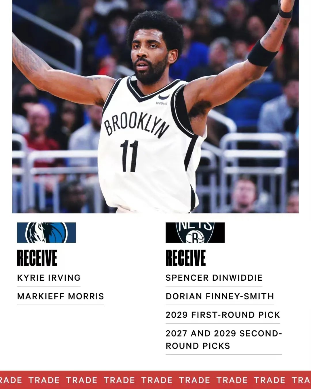 在这笔交易中,篮网得到芬尼-史密斯、丁威迪和一个2029年首轮选秀权,以及2027和2029的次轮选秀签;独行侠则得到欧文和莫里斯。