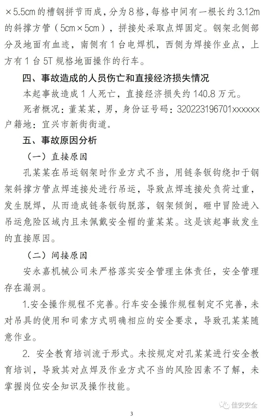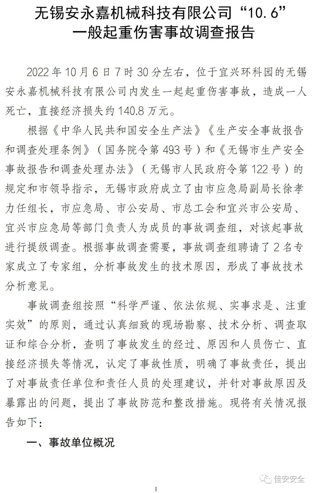 近日,无锡市政府批复《无锡安永嘉机械科技有限公司“10.6”一般起重伤害事故调查报告》,现全文予以公布。