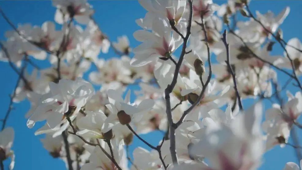 一月末,玉兰花开得晶莹皎洁,亭亭玉立