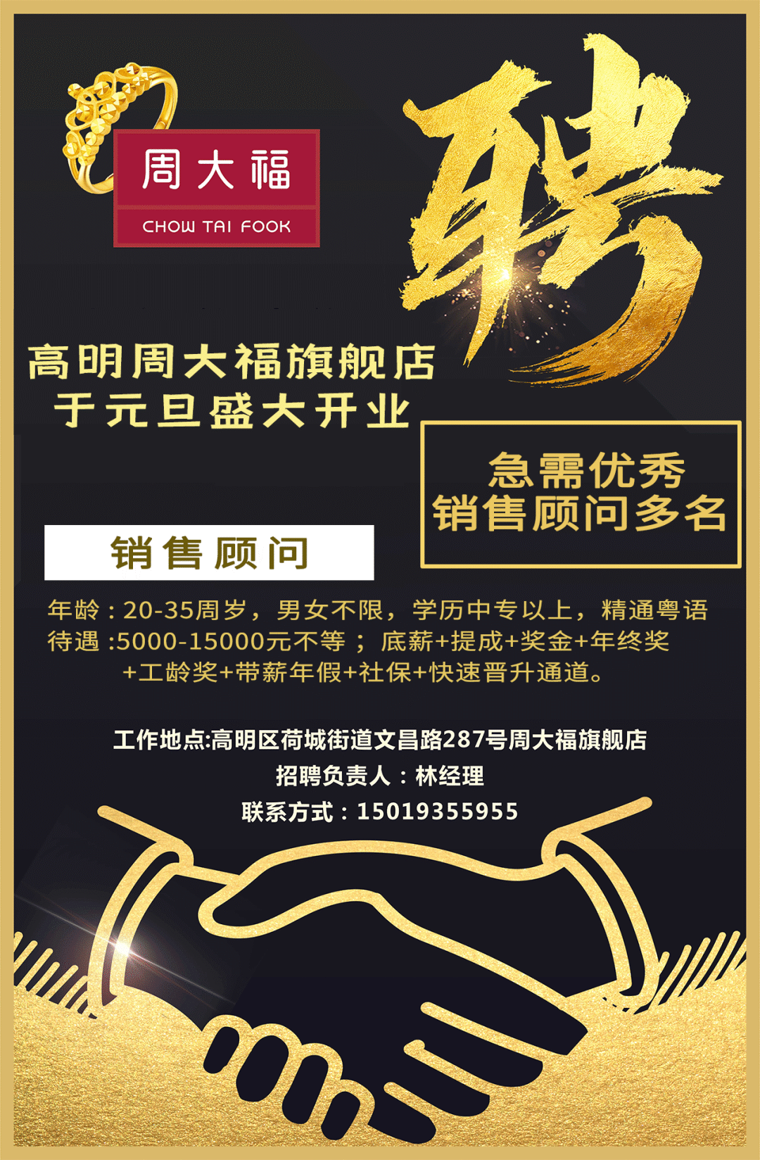 工作地址:佛山顺德区,南海区,高明区,禅城区,三水区就近安排
