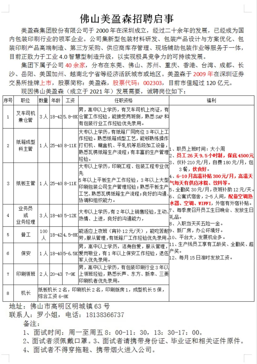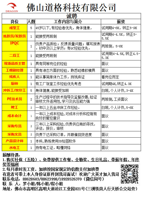 电话:13889930070,廖经理(微信同号,加微信时备注:详询岗位)
