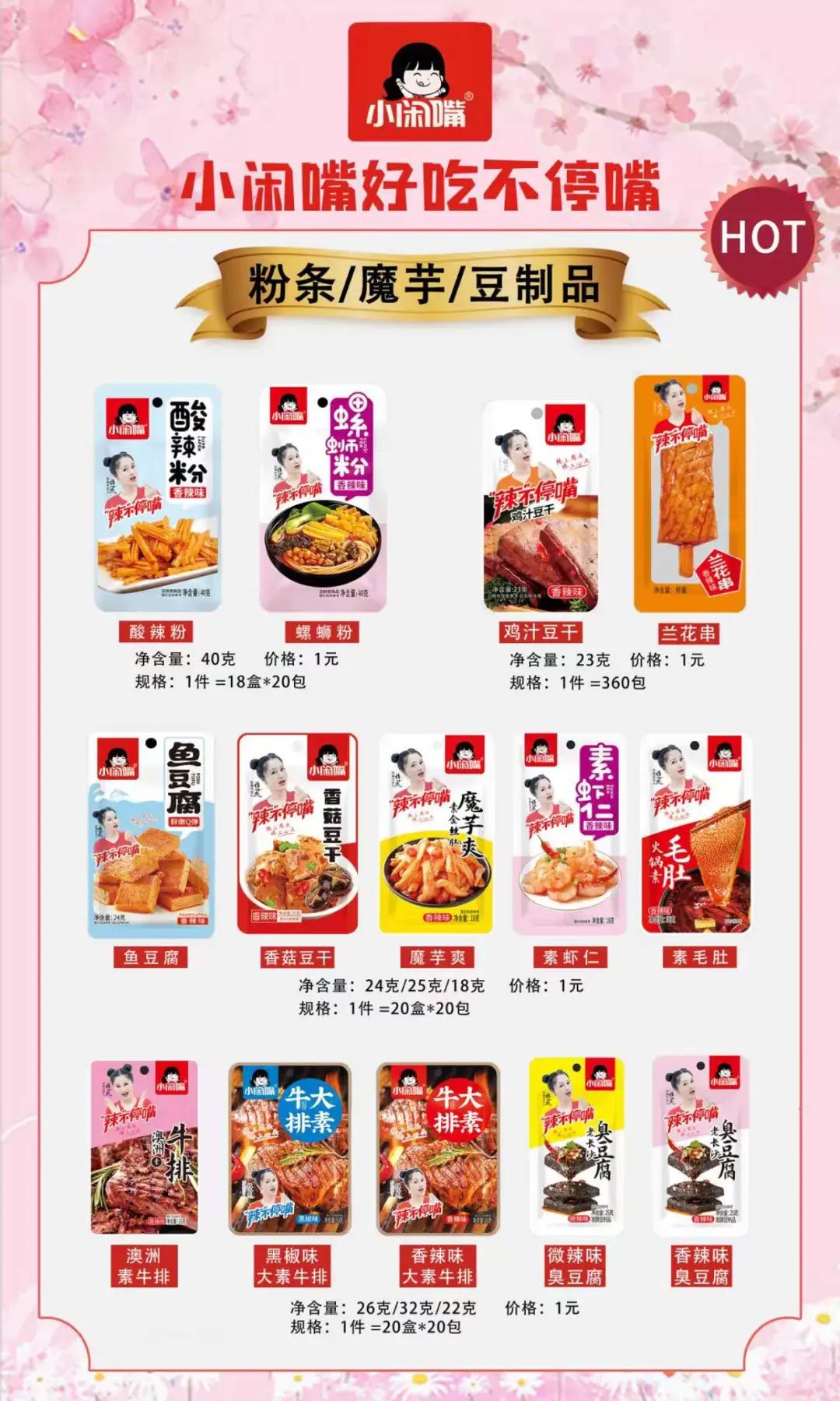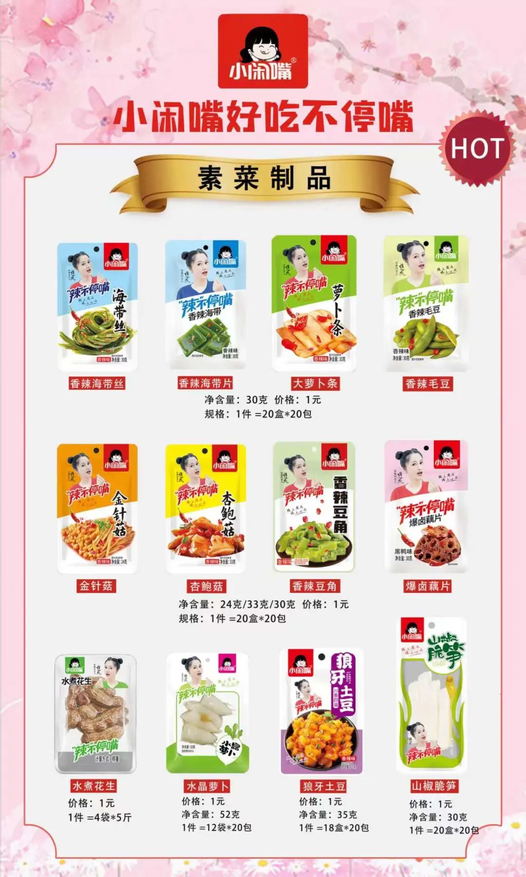 产品介绍:小闲嘴,辣不停嘴!目前产品以3元下为主,产品丰富,质量稳定。