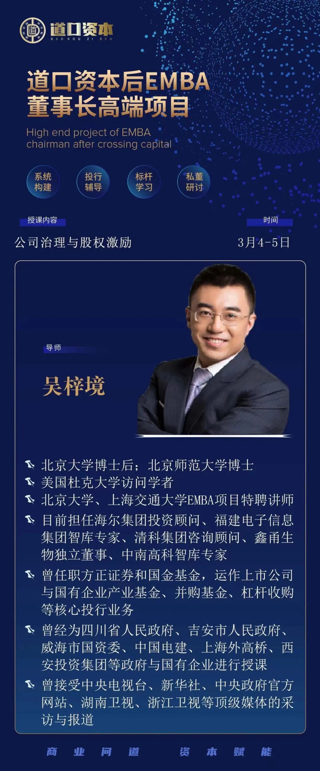 吴梓境先生是北京大学博士后,获得北京师范大学博士学位。在核心期刊发表多篇论文,出版多部专著。曾任职方正证券和国金基金,运作上市公司与国有企业产业基金、并购基金、杠杆收购等核心投行业务。