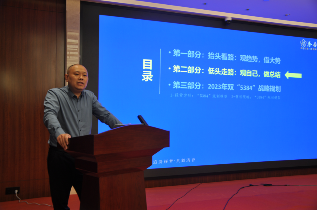 最后,汾杏酒厂销售公司总经理徐涛先生,就《汾杏销售公司2023年双“5384”营销战略》做重大发布及精彩讲解。