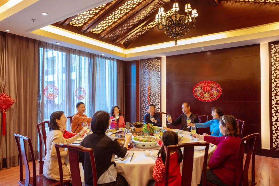 2月1日,荣盛秦皇岛·阿尔卡迪亚酒店客人在餐厅与家人共享家宴。