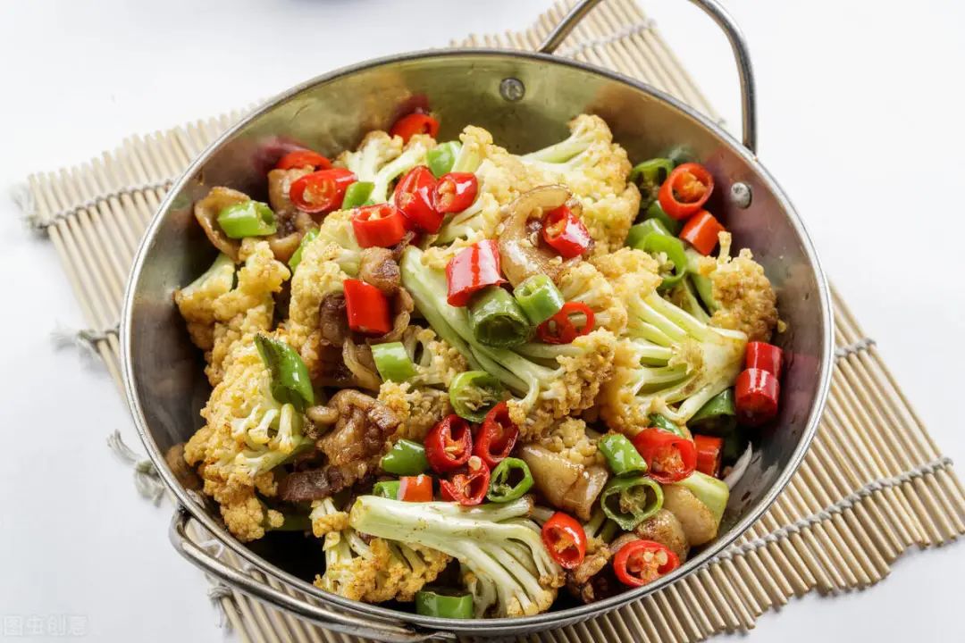2.干锅花菜(有机花菜95g、肉片4g)