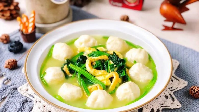 3.菠菜鱼丸汤(小菠菜27g、鱼丸16g)