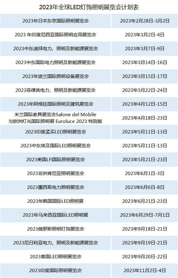 那么,2023年都有哪些展会值得我们关注呢?同期又将举行哪些活动?现在就跟着小古的笔端,一起来看看今年不容错过照明相关展会清单。