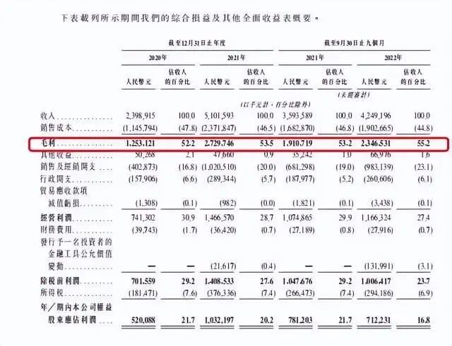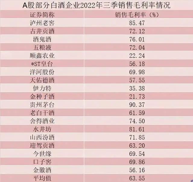 2020年至2022年前三季度,珍酒集团毛利率分别为52.2%、53.5%和55.2%,远远低于平均值64%。