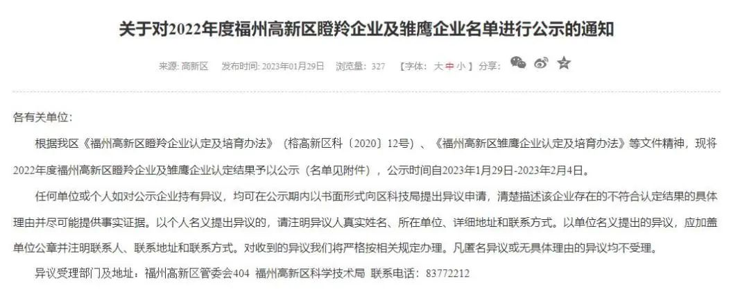 日前,根据《福州高新区雏鹰企业认定及培育办法》等文件精神,福州高新区科学技术局公示了2022年度福州高新区雏鹰企业名单。