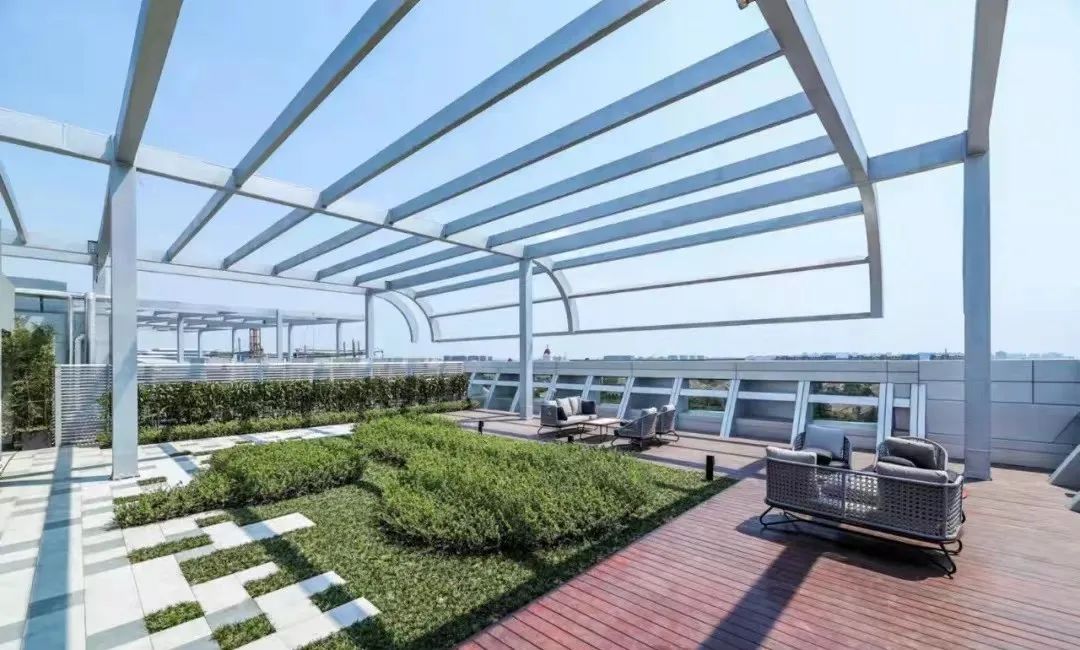 BU中心将空间利用到的极致,就连常人不会想到的屋顶,也让鲜香于此蔓延。当电脑屏幕冻结了灵感,不妨移步屋顶,借着草木幽静,眺望大虹桥的天际致景,也许思维瞬间被打开。