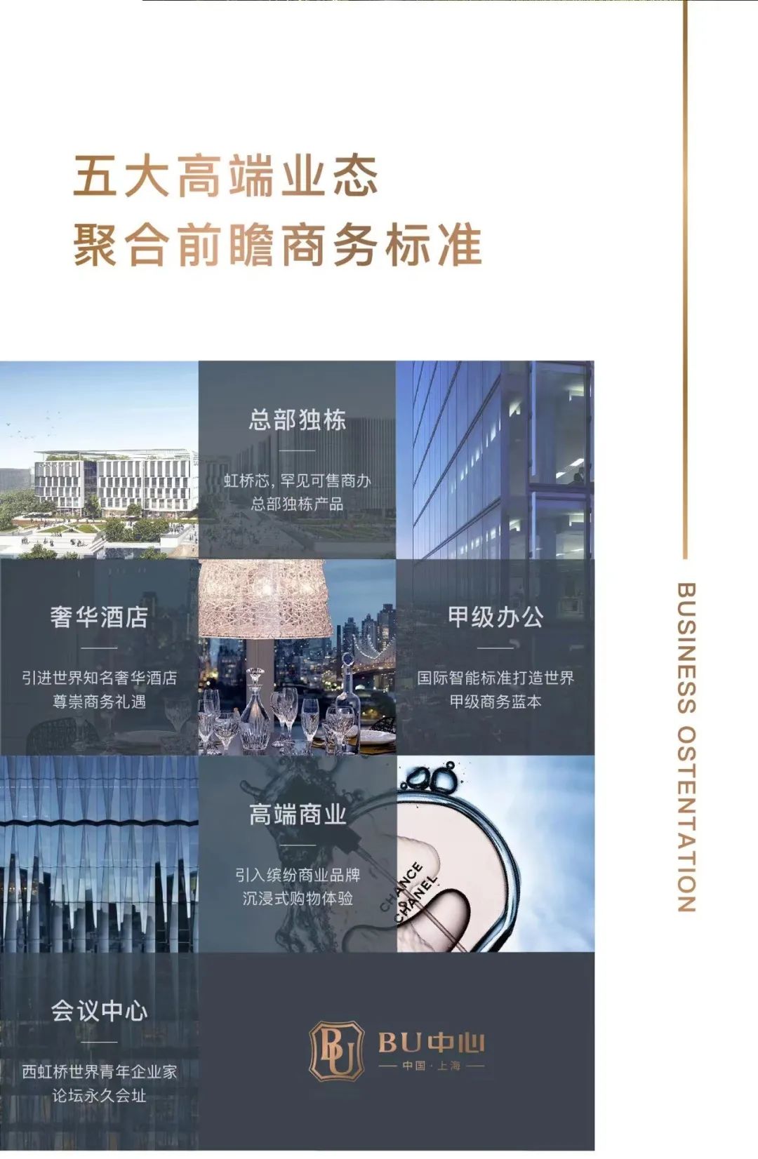 构筑3幢甲级办公楼,以国际高端标准,搭载办公、通讯、消防、安保自动化、楼宇自动控制等多重智能化系统,成就虹桥商务办公标杆。【虹桥BU中心】以“多元、体验、生态、个性、辐射、增值”的产品构建理念,形成其独特的“BIZ+商务场”产品体系,以前卫、科学、丰富的产品内核,创作虹桥罕见的地标式商办综合体。近年来,虹桥CBD核心区的商办开发已逐渐醇熟,土地价值不断外溢的当下,位于西虹桥的国展板块无疑是虹桥未来十年的烫金之地,该区域是中国政府大力发展的继陆家嘴金融中心之后的第二大金融中心,已被定义为国际会展中心、国际高端商业中心、国际商务中心、国际贸易中心的结合体。而BU中心作为距离国展中心最近的商办项目,独占城市发展先机,将驱动大虹桥下一个十年的发展巅峰。