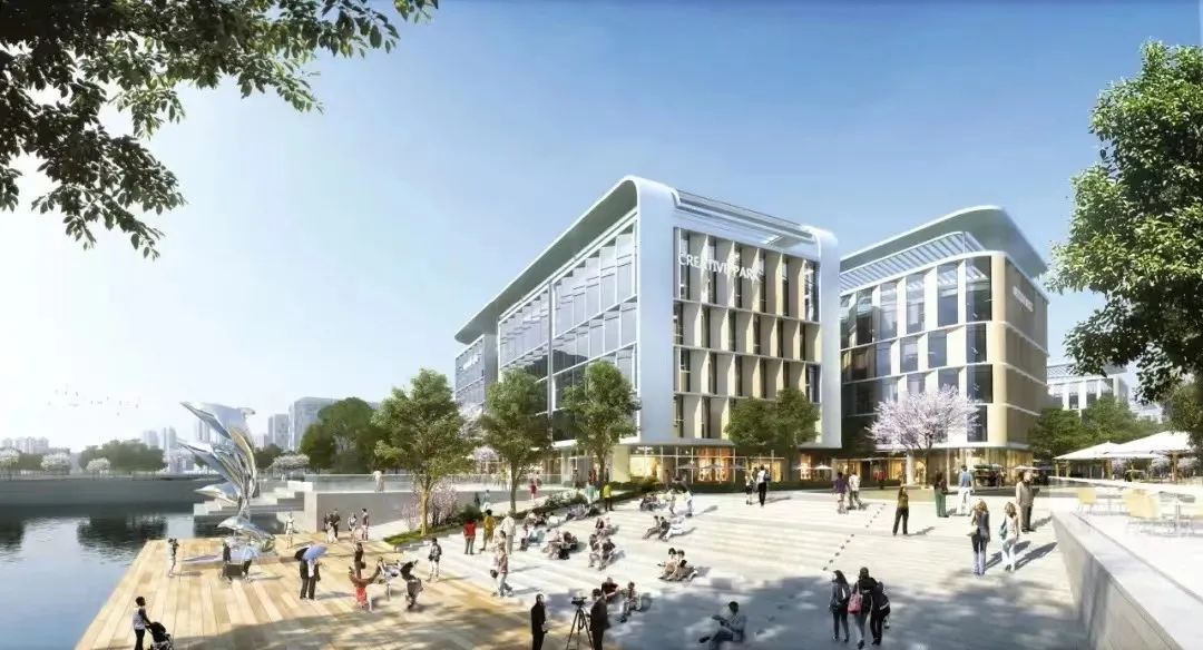 作为上海生态资源最丰富的区域,BU中心近邻水系,因此设计师精心在河岸旁打造了近4000㎡沿河景观步道。天然水系与植物能够释放大量的负氧离子,为人们放松紧张的工作神经。