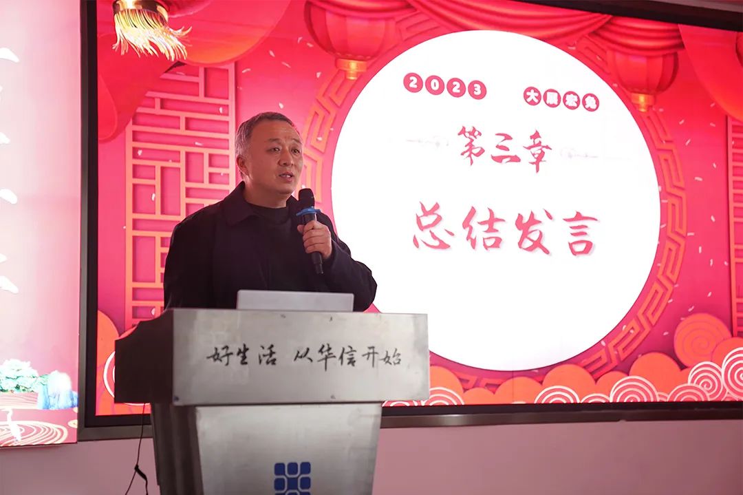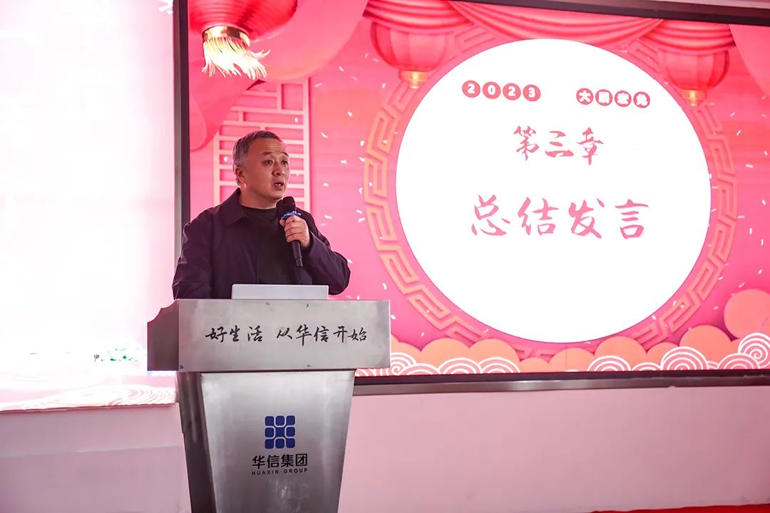 华信集团总经理助理李振涛做总结发言讲到:去年公司被省工商联评为“2022河南省民营企业现代服务业100强”第56名,同时,还取得“河南省2022年度本土房企销售面积第13位、销售金额第18位”的好成绩,并完成4个项目5批次共5000多户集中交付活动,如期如约、保质保量的交付树立了客户信心,同时更彰显了华信的品牌实力。