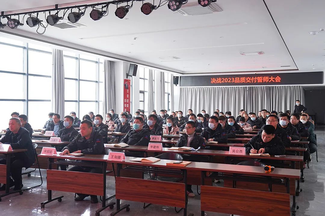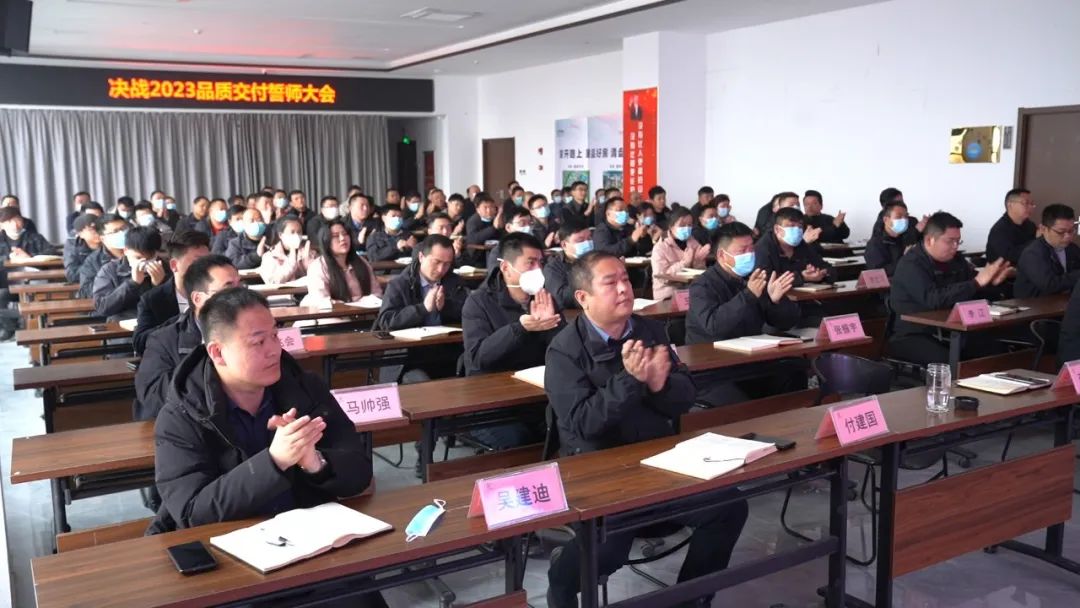 2月6日,华信集团,决战2023品质交付誓师大会在集团中心会议室举行,为项目全面复工明确目标、量化任务、确定标准、强化责任。集团总经理助理李振涛、集团工程管理部经理王如臻,越绣水岸、越绣尚城、越绣城、学府水岸各项目总携项目管理团队,以及监理单位代表、承建单位负责人和甲分包班组代表参加了本次誓师大会。