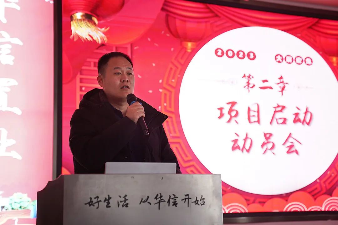 越绣水岸、越绣尚城项目总付建国誓言讲到:我们要严格按照集团宗旨,打造华信三好——建筑、景观、物业好,再次提升我们的产品力、做好2023年各项工作,努力完成今年各项目标,把我们的质量再提高一个新的台阶。