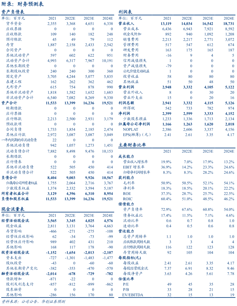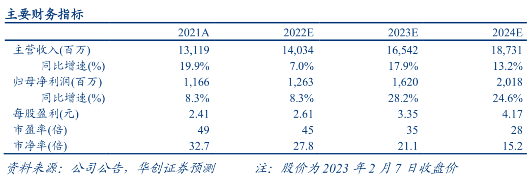 成本压力之下精益投放,全年归母净利润同增8.4%,符合市场预期。毛利率方面,22年原料与包材成本高企,公司通过提价、高端升级等措施进行消化,预计全年毛利率小幅下行约0.4pct。费用率方面,疫情扰动之下公司现饮场景费用投放缩减,22Q1-Q3销售费用率同比-0.8pct,虽然年底管控放松后公司增加费用投放、备战开门红,但我们预计全年销售费用率仍继续精益。此外,考虑到享受税收优惠的新疆等中西部地区受疫情影响利润有所下滑,预计22年公司有效税率提升。综上,公司全年归母净利润同增8.4%,净利率持平稳增,符合市场预期。