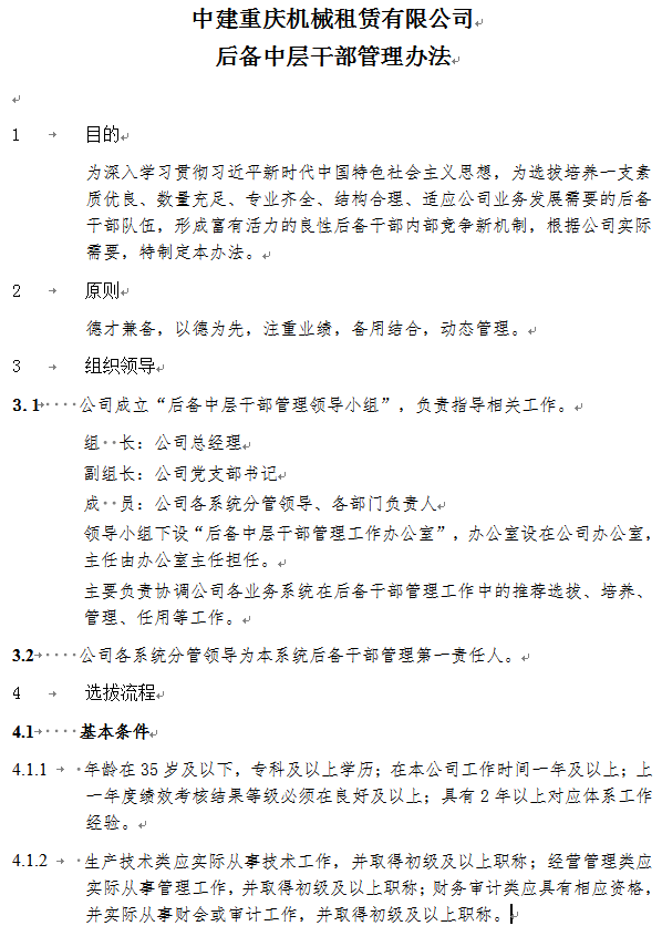 后备中层干部管理