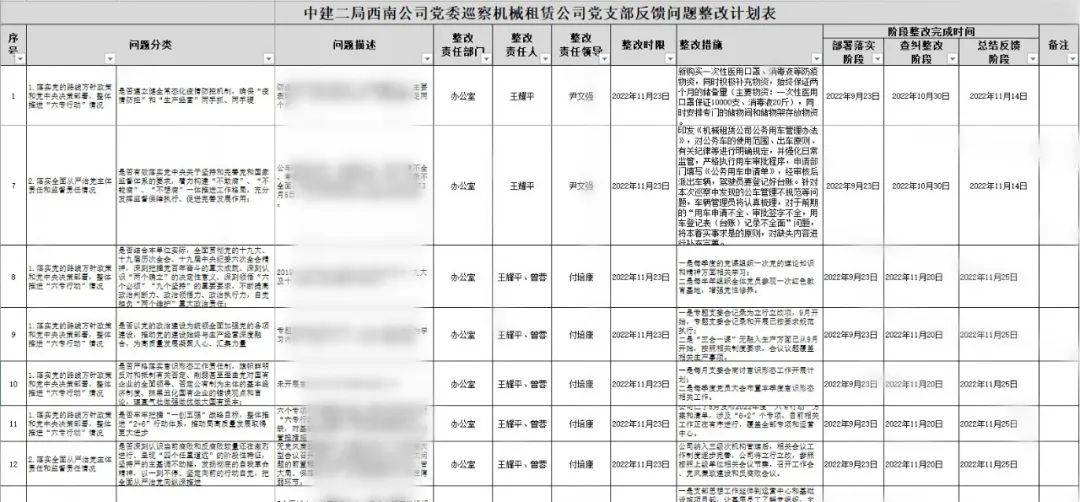 集中整改期间,机械租赁公司纪检监督小组和支委成员累计深入区域运营中心监督、检查、指导巡察整改工作8次,共协助解决问题12条,切实推进巡察整改工作落实落地。