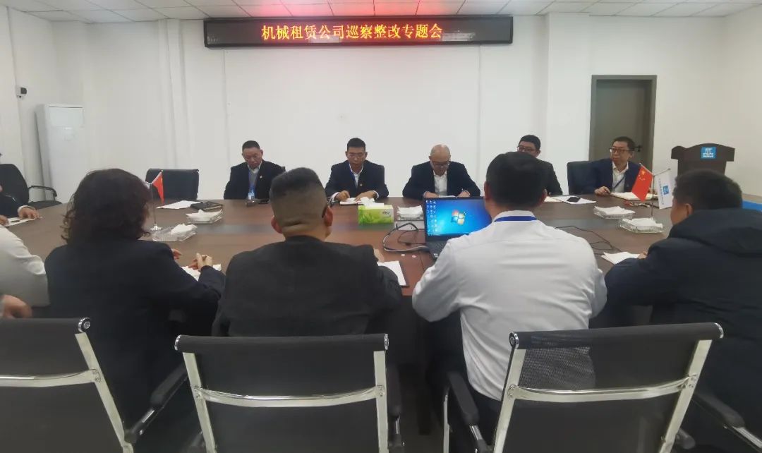 机械租赁公司党支部召开巡察整改推进会,总经理、支委委员尹文强通报问题整改进度,领导班子分别汇报整改完成情况及下一步整改计划,并对推进过程中的难点进行沟通讨论。